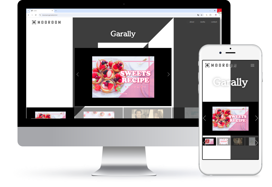 Garally こちらのサイトを制作しました。 - 制作期間:2週間程度 - レスポンシブ対応 Top Menu News&Topics Shop Contact -➤ここから開けます。 HTML/CSS, JavaScript使用 素材作成 こちらのサイトを制作しました。 - 制作期間:1カ月程度 - レスポンシブ対応 top about works contact HTML/CSS, JavaScript使用 素材作成